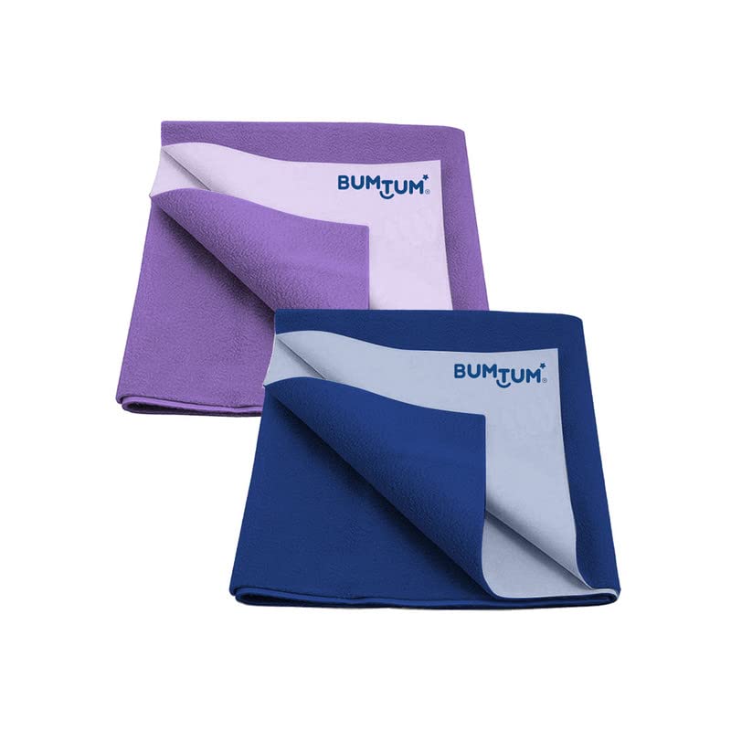 Bumtum Baby Dry Sheet Waterproof Quick Soft Fleece Baby Bed Protector | Anti - Bacterial & Odour Free | Extra Absorbant, Reuseable & Washable (Lilac + Royal Blue Combo, Large Size, Pack of 2)
