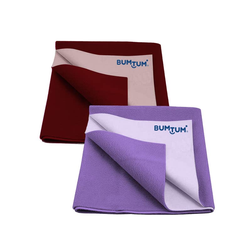 Bumtum Baby Dry Sheet Waterproof Quick Soft Fleece Baby Bed Protector | Anti - Bacterial & Odour Free | Extra Absorbant, Reuseable & Washable (Maroon + Lilac Combo, Medium Size, 100 * 70cm, Pack of 2)