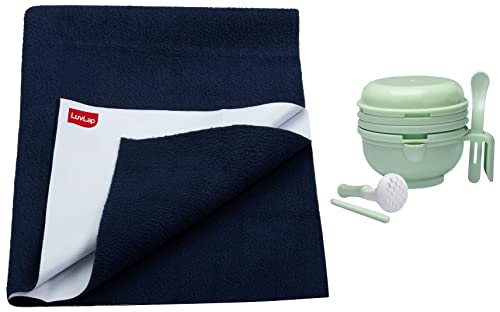 LuvLap 9 in 1 Baby Food Masher Mill Food Grinder Cum Processor with Multifunction Textured Mashing & Filtering Plates with Serving Bowl (Light Green)LuvLap 9 in 1 Baby Food Processor is Made of BOA Free PP material. It is nontoxic odor free and tasteless. It's different types of grinding modes include juicing filtering crushing and holding food. It could be used to grind fruits & vegetables meat and fishes into smooth paste. Different grinding filter has different use thegrinding filter with a lot of triangle bulges is for making blanketcarrot or cucumber the filter covered with small holes is used formaking fruit juice.It is easy to clean. Just rinse it with running water & let it dryLuvLap Instadry Anti-Piling Fleece Extra Absorbent Quick Dry Sheet for baby Baby Bed Protector Waterproof baby sheet Small size 100x140cm Pack of 1 Navy BlueLuvLap instadry extra absorbent sheet come with soft and breathable material lightweight and easy to carry.