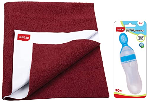 LuvLap Feeding Spoon with Squeezy food Grade Silicone Feeder bottle For Infant Baby 90ml BPA FreeBlueSoft Silicone food feeding bottle with spoon can be used to feed puries juice milk or water to babies. Helps in easy transition. Effortless one hand feeding. Dust cover and disk make it easy to keep and carry.LuvLap Instadry Anti-Piling Fleece Extra Absorbent Quick Dry Sheet for baby Baby Bed Protector Waterproof baby sheet Small size 50x70cm Pack of 1 MaroonLuvLap instadry extra absorbent sheet come with soft and breathable material lightweight and easy to carry.