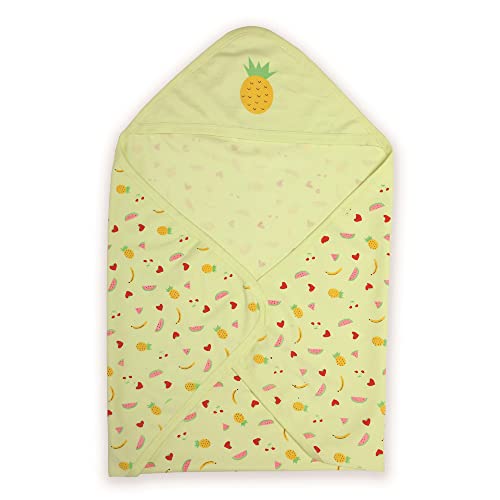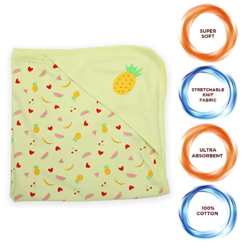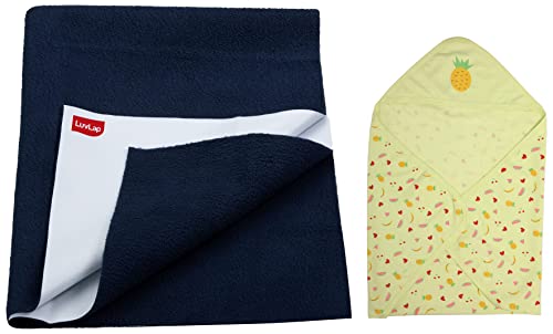 LuvLap Instadry Anti-Piling Fleece Extra Absorbent Quick Dry Sheet for Baby, Small Size 100x140cm, Pack of 1, Navy Blue & LL Cotton Hooded Wrapper Cum Warm, Blanket Pineapple Print - Yellow