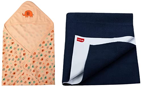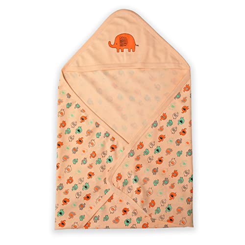 LuvLap Instadry Anti-Piling Fleece Small Size 100x140cm Pack of 1 Navy Blue & Soft 100% Cotton Hooded Wrapper Cum Warm Blanket for New Born Baby to 3 Year Old 75cmx75cm Elephant Print (Pink)