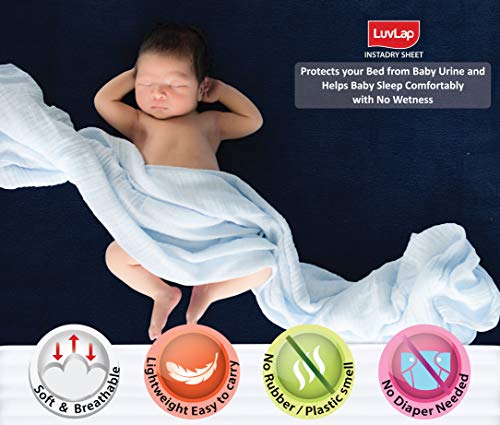 LuvLap Instadry Extra Absorbent Dry Sheet/Bed Protector - Salmon Rose, 0m+ - Medium 70 x 100cm & LuvLap Instadry Extra Absorbent Dry Sheet/Bed Protector - Navy Blue, 0m+ - Medium 70 x 100cm
