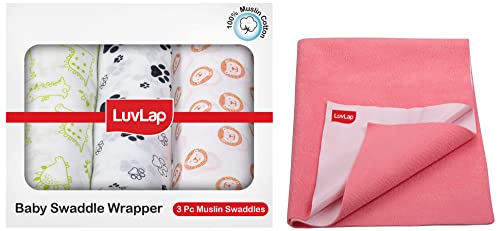 LuvLap Muslin Swaddle Animals WhiteLuvLap is committed to your babys comfort and joy. LuvLaps range of Baby Swaddles gives your newborn a snug cozy womb-like feeling! Made of premium cotton muslin the swaddles are breathable prewashed ultra-soft and softer with every wash. Free from harmful chemicals safe and irritant-free for your baby's most sensitive and tender skin. This is lightweight perfectly sized for swaddling and can serve multiple uses - burp cloth towel stroller cover play mat nursing cover etc.LuvLap Instadry Anti-Piling Fleece Extra Absorbent Quick Dry Sheet for baby Baby Bed Protector Waterproof baby sheet Small size 100x140cm Pack of 1 Salmon RoseLuvLap instadry extra absorbent sheet come with soft and breathable material lightweight and easy to carry.