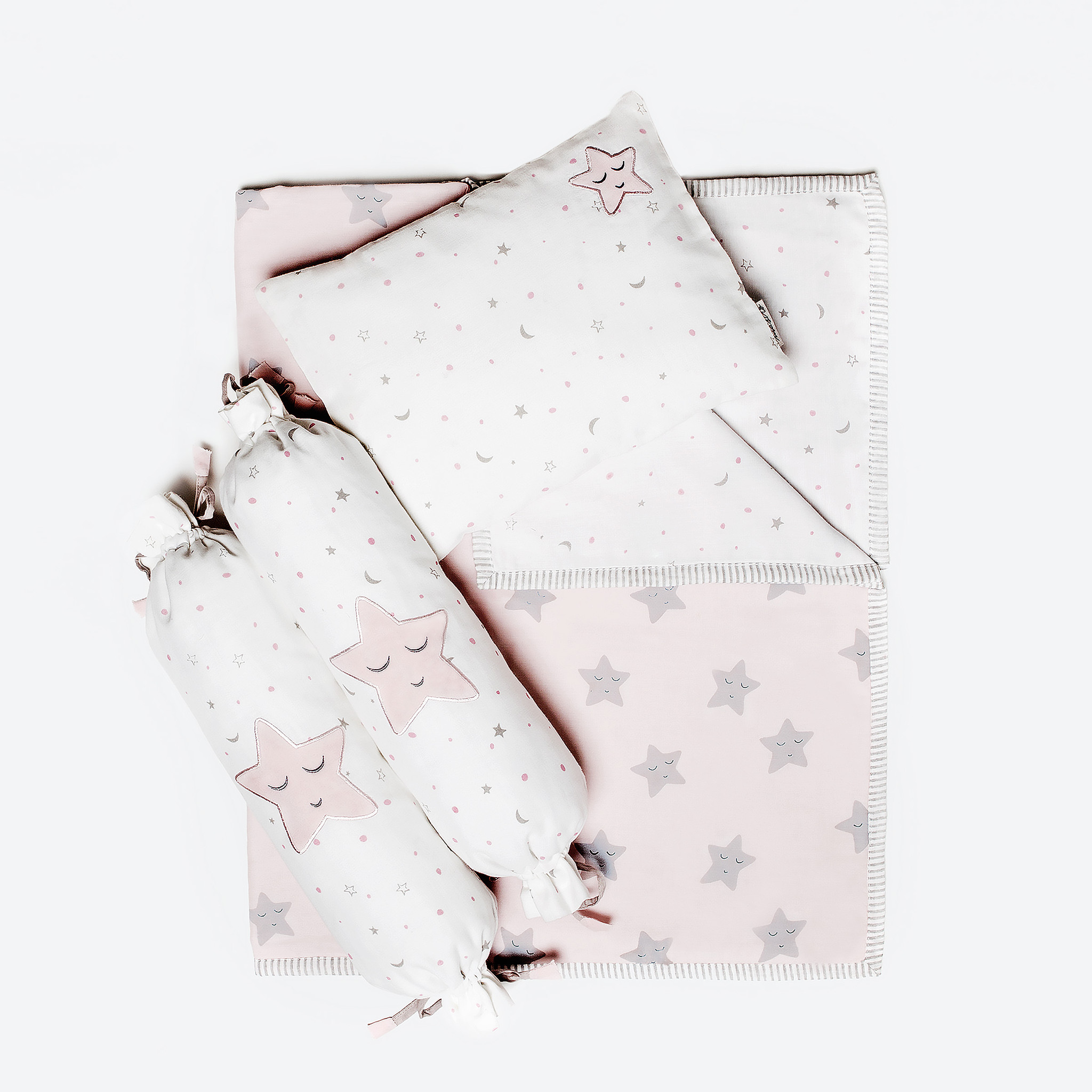 Welcome the little one home in grand style! This gift set features irresistibly soft sleep essentials made with organic cotton just what every baby needs to drift off into dreamland!Your Mini Cot Set Includes1 x Pillow (insert included)2 x Bolsters (insert included)1 x Dohar Blanket (42 x 42")