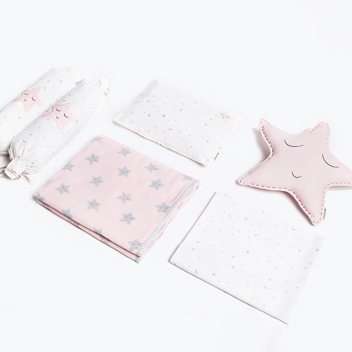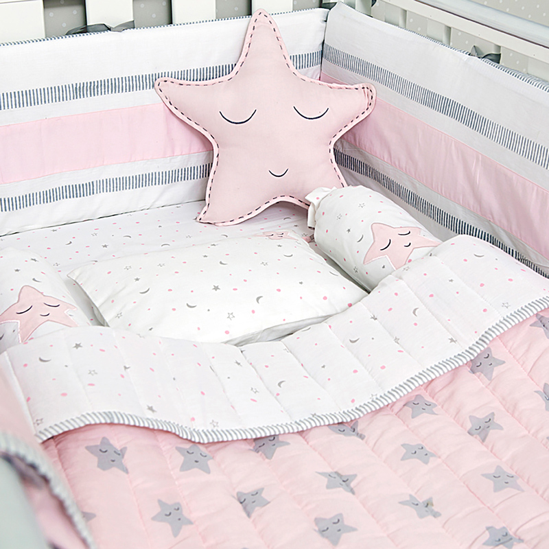 Our cot bedding collections feature adorable characters, signature prints and super soft organic cotton Indian fabrics that add just the right amount of comfort and playfulness to your baby's nursery.Your Cot Bedding Set Includes1 x Pillow (insert included)2 x Bolsters (insert included)1 x Dohar OR Quilted Blanket (42 x 42")1 x Fitted Cot Sheet*1 x Shape Cushion