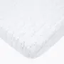 Made of 100% organic cotton and printed with non-toxic dyes, our fitted cot sheets provide your baby's sleep space with über softness and comfort. A concealed elastic band stitched around the entire edge provides a secure fit and works well for standard sized cot mattresses.SizeFits mattresses 27.5 x 55" (70 x 140cm) upto 6" deepFabricOrganic cottonCareMachine wash cold, tumble dry low, do not bleach, use mild detergents