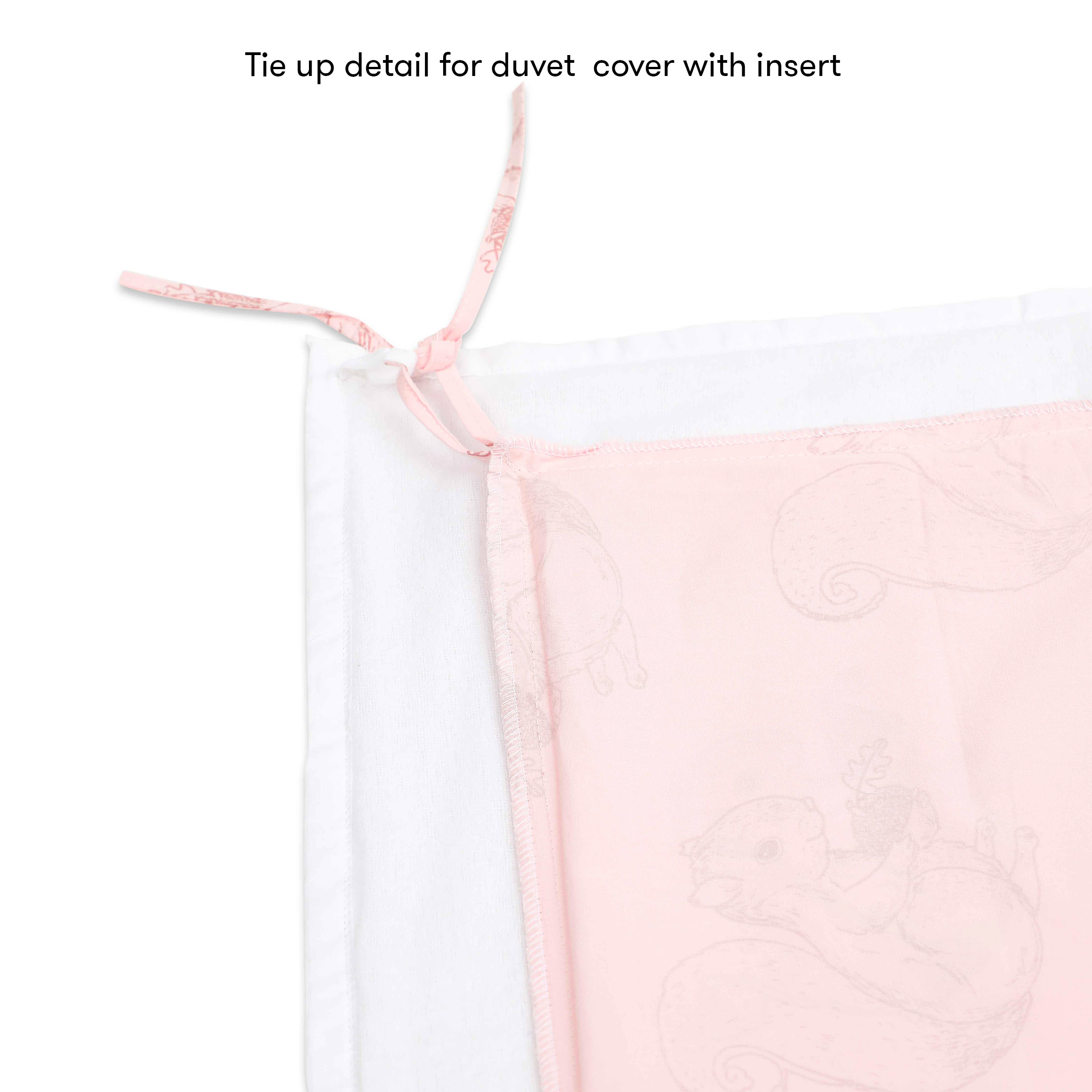 Super soft and luxurious 100% organic cotton cot bedding set with screen printed forest animal motifs. Duvet cover, pillow cover and fitted cot sheet sold as a set in a printed organic cotton tote bag. Perfect as a gift! Suitable for babies from birth until 4 years or whenever they outgrow their cot.Your Cot Bedding Set includes:1 x Toddler pillow (13 x 19") insert included1 x Fitted cot sheet*1 x Duvet cover (39 x 49")1 x Duvet insert (38 x 48")