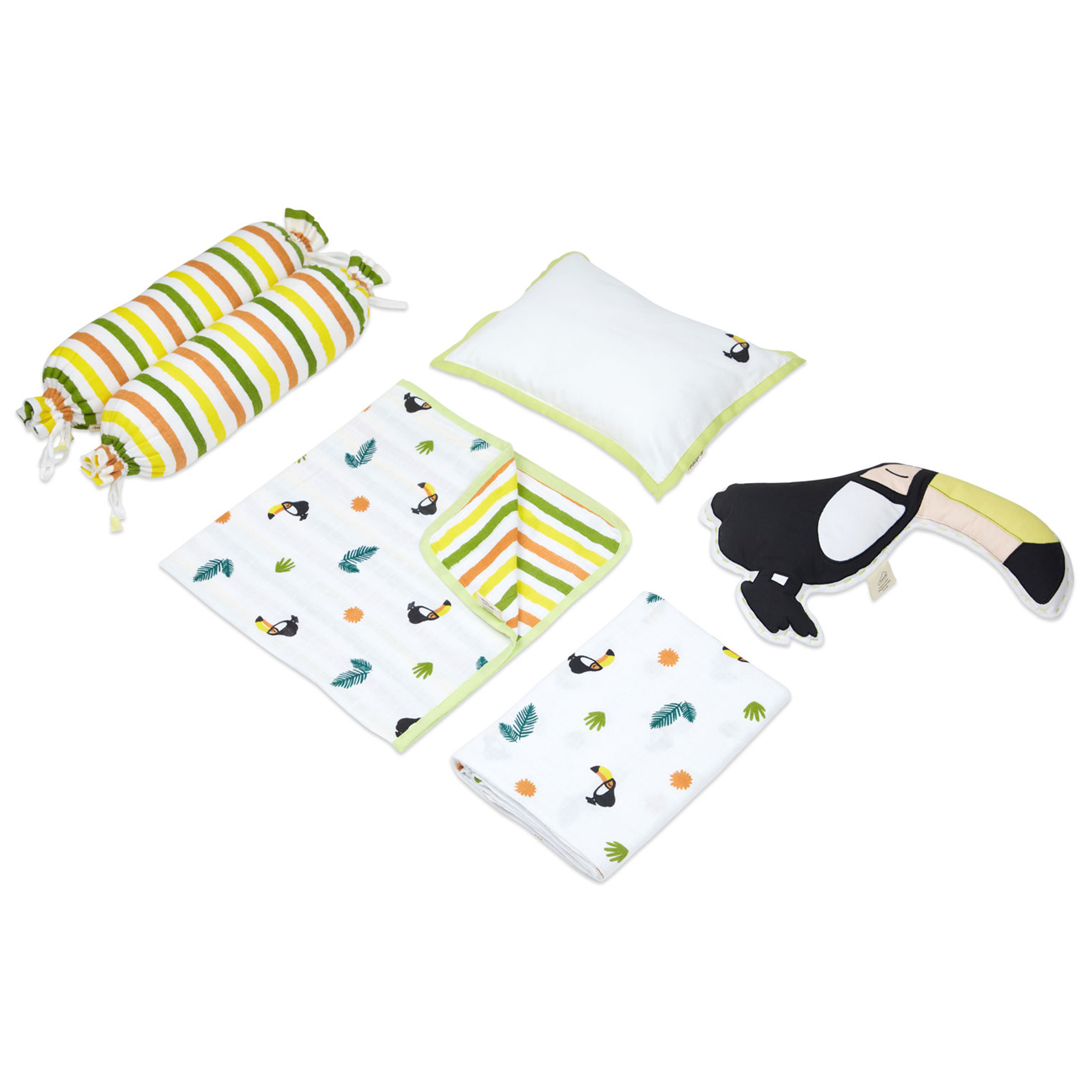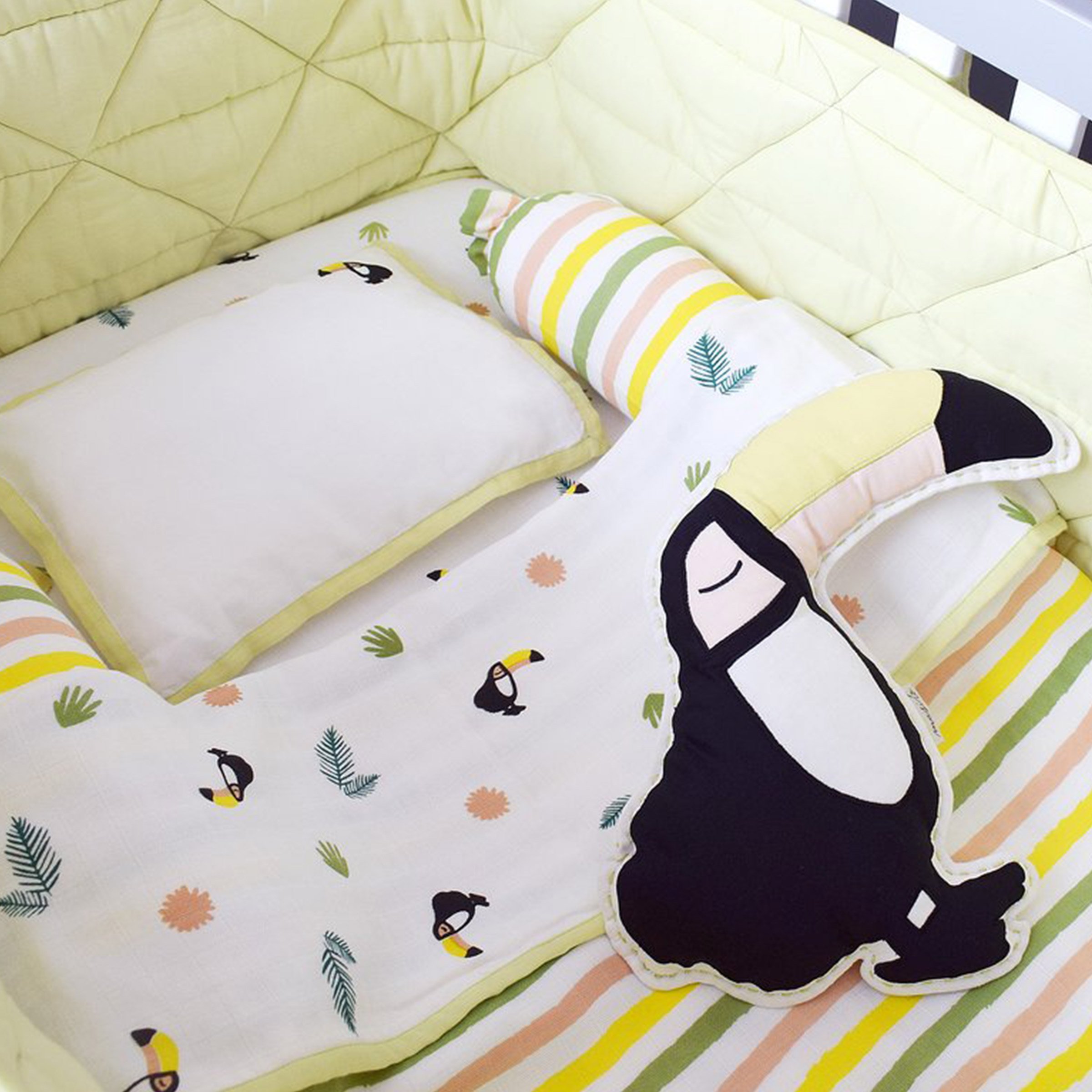 Our cot bedding collections feature adorable characters, signature prints and super soft organic cotton fabrics that add just the right amount of comfort and playfulness to your baby's nursery.Your Cot Bedding Set Includes1 x Pillow (insert included)2 x Bolsters (inserts included)1 x Snuggle Blanket (42 x 42")1 x Fitted Cot Sheet*1 x Shape Cushion