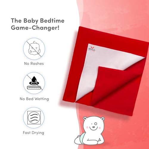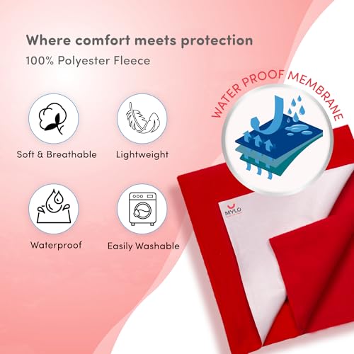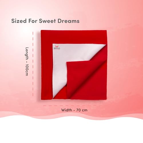 Mylo Baby Waterproof Mattress Protector for Baby (0-3 Years), Extra Absorbent, Soft and Reusable Quick Dry Sheets (Medium, 100cm x 70cm, Red)