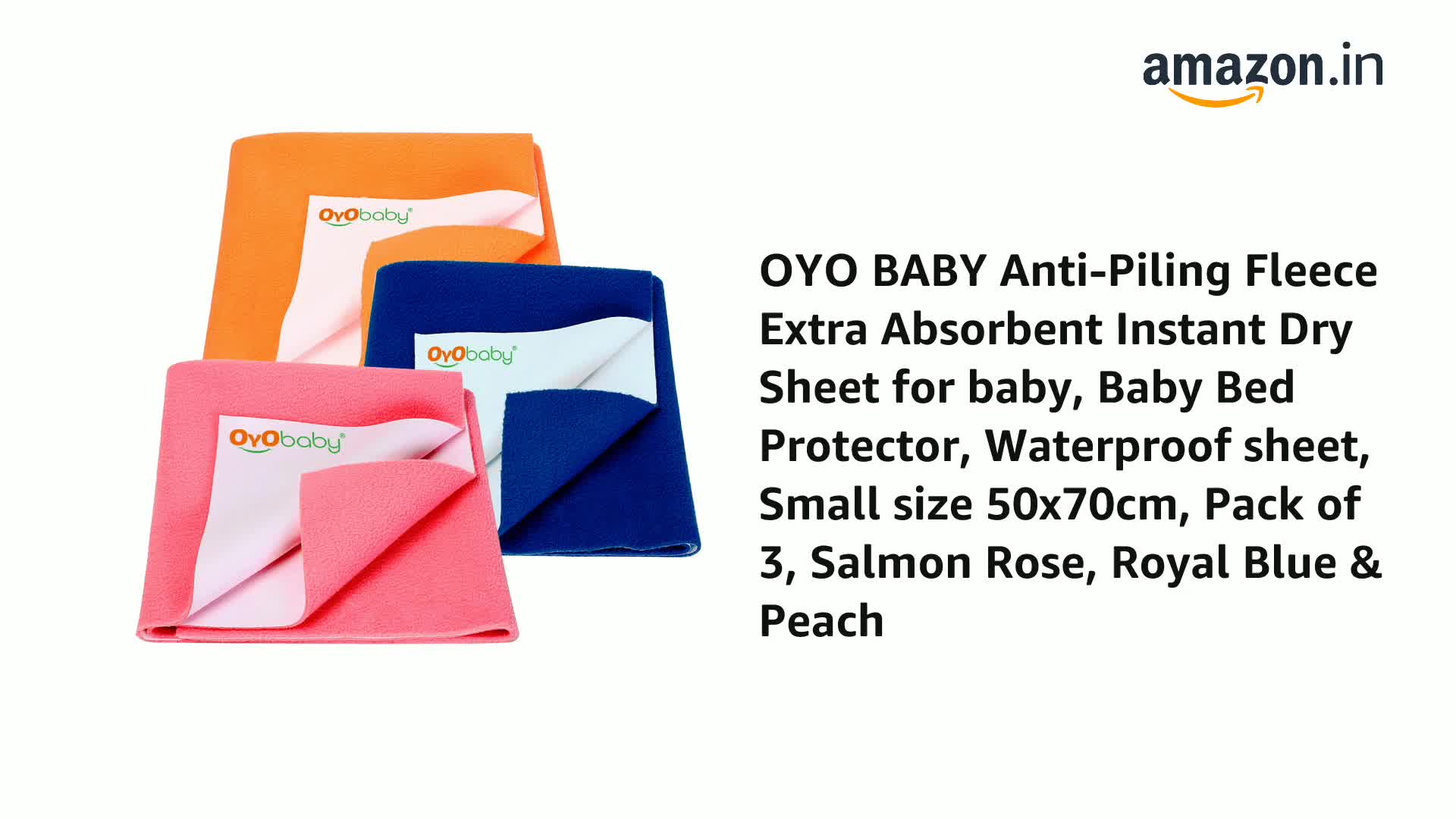 OYO BABY baby dry sheet is made of best waterproof material and highly absorbent fibre. Provides freedom to enjoy uninterrupted sleep for longer periods. It is with quick dry technology that dries faster. Feel the diaper free night and rush-free skin cosy smooth and silky feeling. This waterproof mattress protector has cosy soft and smooth top surface for baby to have sound sleep all night with maximum protection. OYO BABY quick dry bed protector sheet Moreover it is skin friendly and heat-free soft and unique multi-layer noiseless fabric sheet. It is an alternative to PVC rubber mats. Highly hygienic and breathable water proof sheet which is durable reusable economical and light weight. This amazing baby bed protector sheet is ready to use anywhere you go. This baby dry sheet is delicate spongy associated water-proof on these lines creating the tangle usable for babies and grown-up. Made up natural colour dyes which are best for babies. Further this perfect dry sheet for babies protects bed from obtaining wet. So offer your baby the liberty to pee on the bed and let them sleep for extended hours. This sheet from OYO BABY is an absorbent & water proof. It stops the piss or any liquid from getting in your mattresses. It dries quickly so you don't have to be compelled to amendment the sheets once more & again. Conjointly it holds eight times water then its weight. Also it is available in 4 different sizes - Small Medium Large & Extra Large. For example if you want dry sheet for baby for double bed then you dont have to worry we are having the best baby dry sheets here.