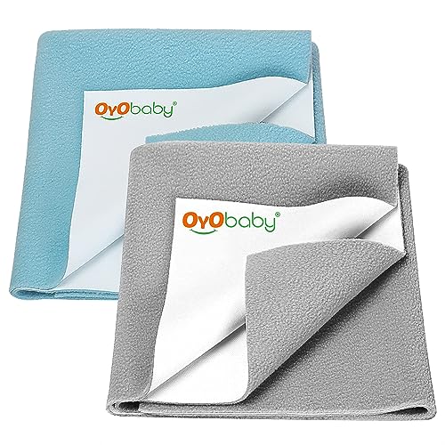 OYO BABY Extra Absorbent Waterproof Baby Dry Sheet | Quick Dry Sheet for New Born Baby Bed Protector, Soft & Breathable Rubber Sheet for Bed (Grey + Sea Blue, Medium Combo 2)