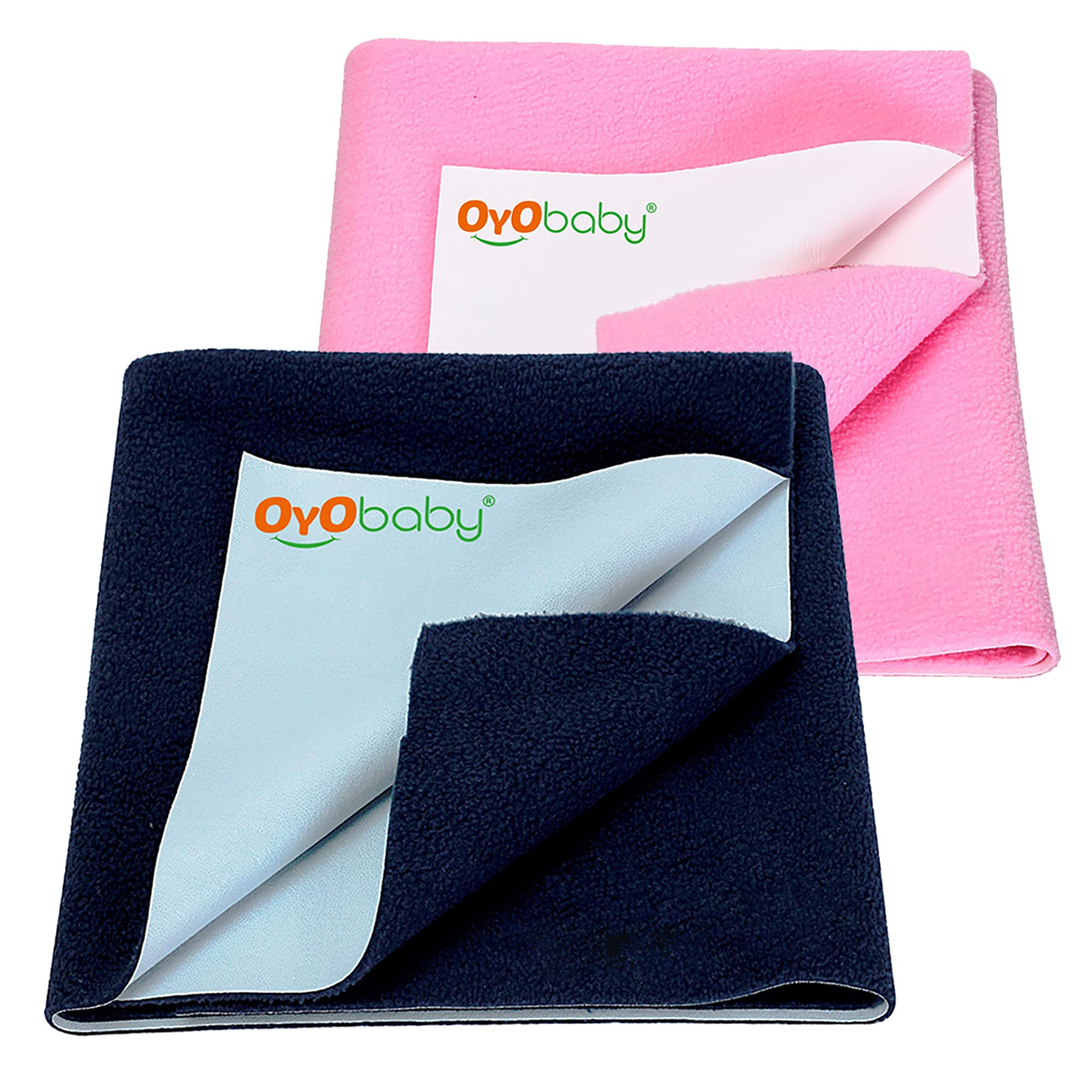 HomeBabyNurseryCrib SheetsOYO BABY Extra Absorbent Waterproof Baby Dry Sheet Large Size (140 x 100cm) Pack of 2 | Quick Dry Sheet for New Born Baby Bed Protector, Soft & Breathable Rubber Sheet for Bed|Dark Blue - Pink