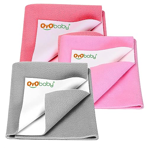 OYO BABY Anti-Piling Fleece Extra Absorbent Instant Dry Sheet for Baby, Baby Bed Protector, Waterproof Sheet, Small Size 50x70cm, Combo Pack of 3, Salmon Rose, Pink, & Grey