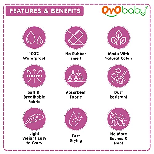 OYO BABY baby dry sheet is made of best waterproof material and highly absorbent fibre. Provides freedom to enjoy uninterrupted sleep for longer periods. It is with quick dry technology that dries faster. Feel the diaper free night and rush-free skin cosy smooth and silky feeling. This waterproof mattress protector has cosy soft and smooth top surface for baby to have sound sleep all night with maximum protection. OYO BABY quick dry bed protector sheet Moreover it is skin friendly and heat-free soft and unique multi-layer noiseless fabric sheet. It is an alternative to PVC rubber mats. Highly hygienic and breathable water proof sheet which is durable reusable economical and light weight. This amazing baby bed protector sheet is ready to use anywhere you go. This baby dry sheet is delicate spongy associated water-proof on these lines creating the tangle usable for babies and grown-up. Made up natural colour dyes which are best for babies. Further this perfect dry sheet for babies protects bed from obtaining wet. So offer your baby the liberty to pee on the bed and let them sleep for extended hours. This sheet from OYO BABY is an absorbent & water proof. It stops the piss or any liquid from getting in your mattresses. It dries quickly so you don't have to be compelled to amendment the sheets once more & again. Conjointly it holds eight times water then its weight. Also it is available in 4 different sizes - Small Medium Large & Extra Large. For example if you want dry sheet for baby for double bed then you dont have to worry we are having the best baby dry sheets here.