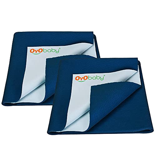 OYO BABY Reuseable Waterproof Dry Sheet for New Toddler Infant Baby | Extra Absorbent Quick Dry Sheet | Instadry Anti-Piling Fleece Dry Sheet | Pack of 2 (Small - 70 cm x 50 cm) Dark Sea Blue