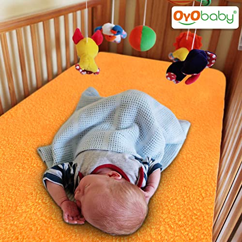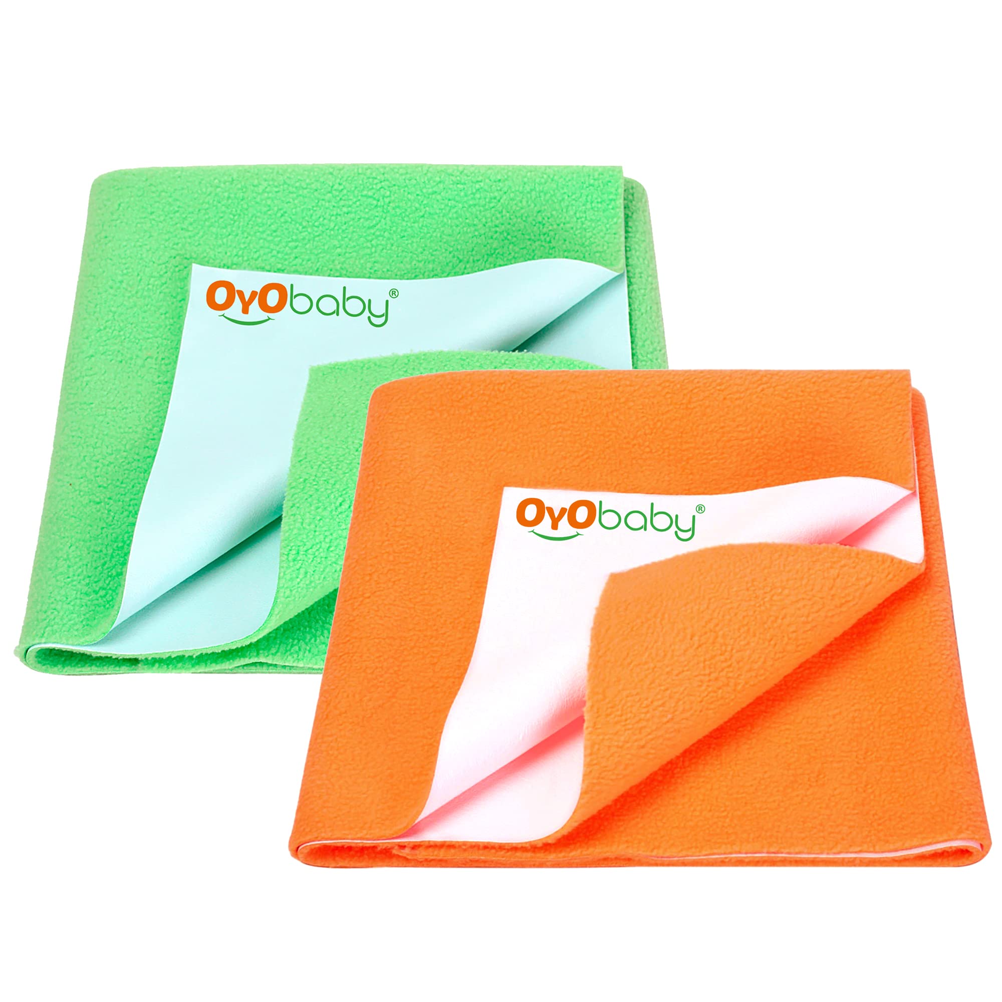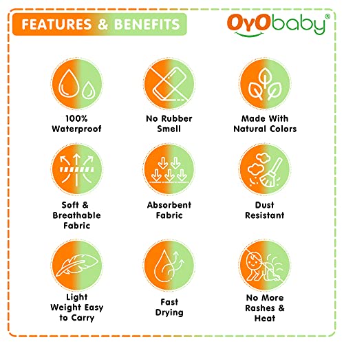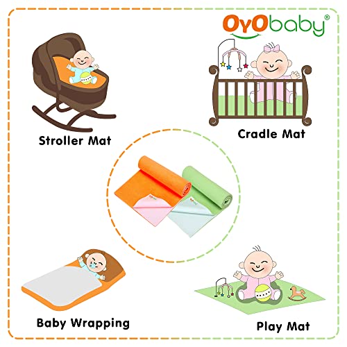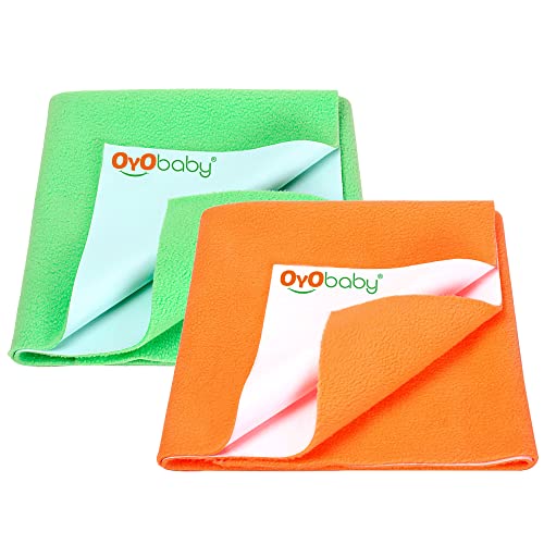 OYO BABY baby dry sheet is made of best waterproof material and highly absorbent fibre. Provides freedom to enjoy uninterrupted sleep for longer periods. It is with quick dry technology that dries faster. Feel the diaper free night and rush-free skin cosy smooth and silky feeling. This waterproof mattress protector has cosy soft and smooth top surface for baby to have sound sleep all night with maximum protection. OYO BABY quick dry bed protector sheet Moreover it is skin friendly and heat-free soft and unique multi-layer noiseless fabric sheet. It is an alternative to PVC rubber mats. Highly hygienic and breathable water proof sheet which is durable reusable economical and light weight. This amazing baby bed protector sheet is ready to use anywhere you go. This baby dry sheet is delicate spongy associated water-proof on these lines creating the tangle usable for babies and grown-up. Made up natural colour dyes which are best for babies. Further this perfect dry sheet for babies protects bed from obtaining wet. So offer your baby the liberty to pee on the bed and let them sleep for extended hours. This sheet from OYO BABY is an absorbent & water proof. It stops the piss or any liquid from getting in your mattresses. It dries quickly so you don't have to be compelled to amendment the sheets once more & again. Conjointly it holds eight times water then its weight. Also it is available in 4 different sizes - Small Medium Large & Extra Large. For example if you want dry sheet for baby for double bed then you dont have to worry we are having the best baby dry sheets here.