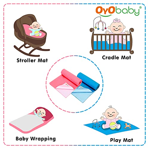 OYO BABY Waterproof Baby Bed Protector Dry Sheets for New Born Babies | Reusable Mats | Cot & Bassinet Gift Pack (Gift Pack 2 (70cm X 50cm) Salmon Rose + Firoza)