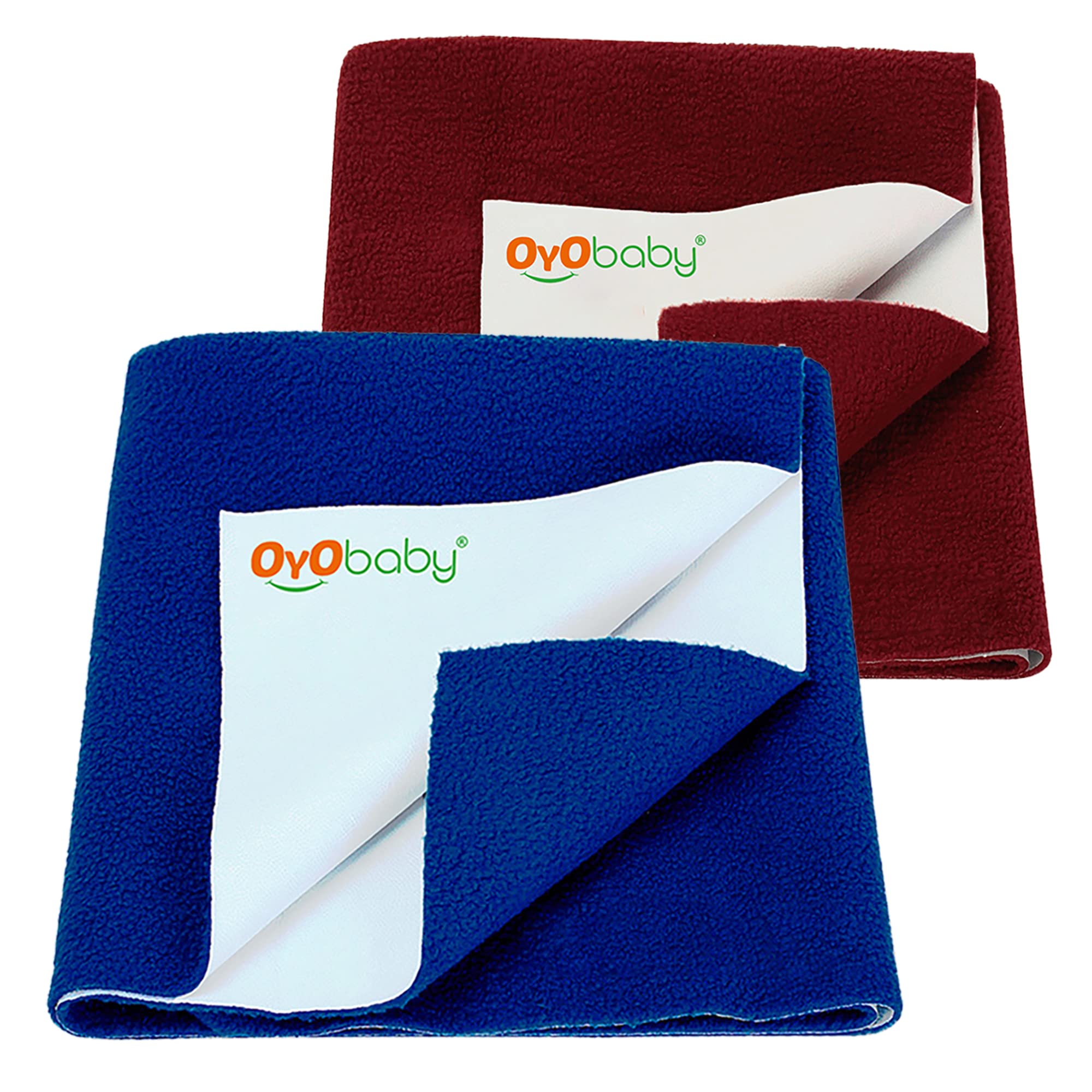 OYO BABY baby dry sheet is made of best waterproof material and highly absorbent fibre. Provides freedom to enjoy uninterrupted sleep for longer periods. It is with quick dry technology that dries faster. Feel the diaper free night and rush-free skin cosy smooth and silky feeling. This waterproof mattress protector has cosy soft and smooth top surface for baby to have sound sleep all night with maximum protection. OYO BABY quick dry bed protector sheet Moreover it is skin friendly and heat-free soft and unique multi-layer noiseless fabric sheet. It is an alternative to PVC rubber mats. Highly hygienic and breathable water proof sheet which is durable reusable economical and light weight. This amazing baby bed protector sheet is ready to use anywhere you go. This baby dry sheet is delicate spongy associated water-proof on these lines creating the tangle usable for babies and grown-up. Made up natural colour dyes which are best for babies. Further this perfect dry sheet for babies protects bed from obtaining wet. So offer your baby the liberty to pee on the bed and let them sleep for extended hours. This sheet from OYO BABY is an absorbent & water proof. It stops the piss or any liquid from getting in your mattresses. It dries quickly so you don't have to be compelled to amendment the sheets once more & again. Conjointly it holds eight times water then its weight. Also it is available in 4 different sizes - Small Medium Large & Extra Large. For example if you want dry sheet for baby for double bed then you dont have to worry we are having the best baby dry sheets here.