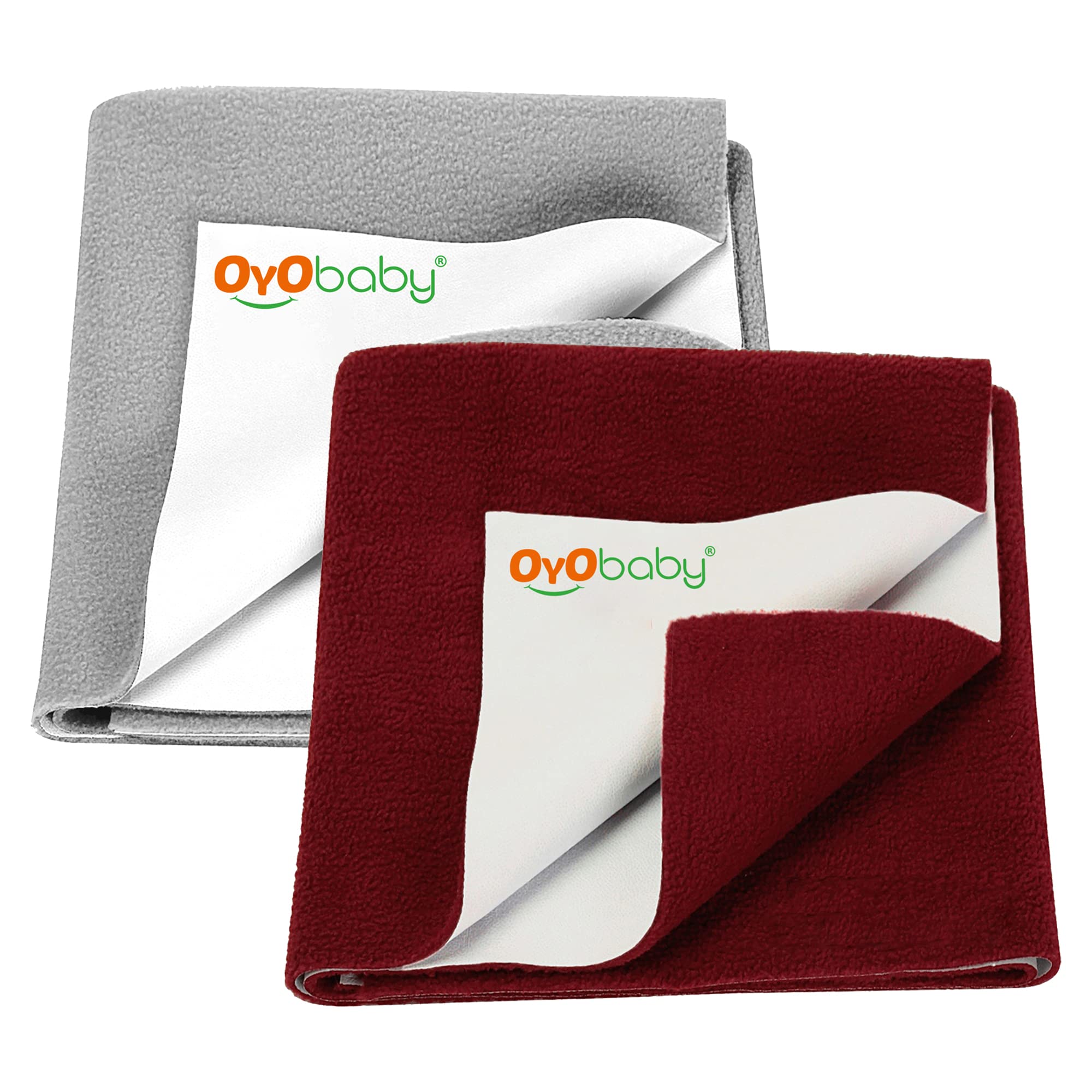 OYO BABY Extra Absorbent Waterproof Baby Dry Sheet Small Size (70x50cm) – Pack of 2 – Quick Dry Sheet for Bed Protector, Soft & Breathable Grey + Maroon