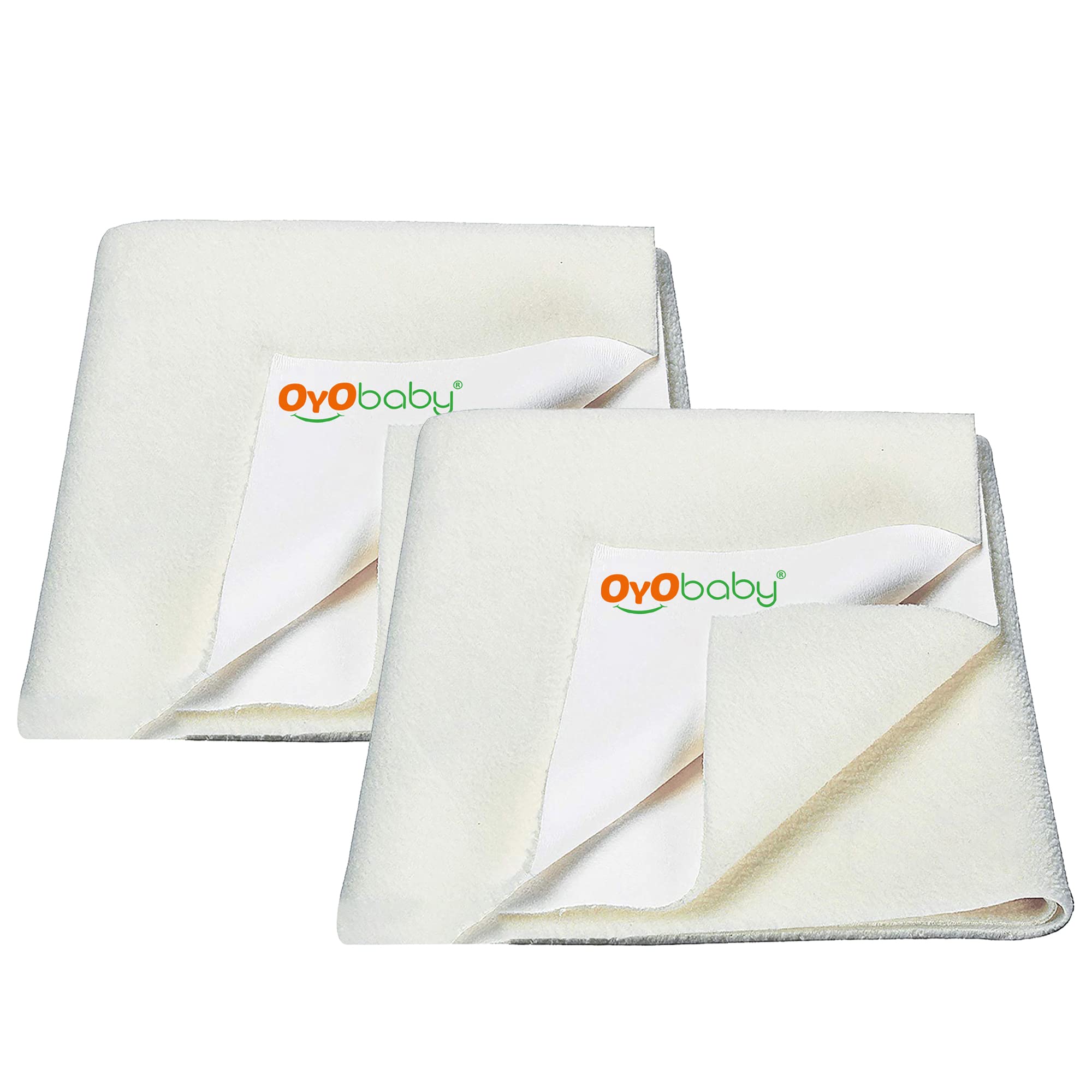 OYO BABY - Waterproof Mattress Protector Sheet | Dry Sheet for Kids and Adults - Kids Waterproof Dry Sheet Cotton Bed Protector (Baby Bed Protector Medium Size - 100cm x 70cm - (Pack of 2), Ivory)