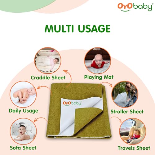 Peace of Mind: OYO BABY waterproof undermats will provide excellent protection against fluids urine perspiration allergens dust mites and bacteria. It is 100% waterproof yet breathable comfortable and noiseless. The mat is vinyl (PVC) free and safe to sensitive skins. Silky Smooth and Soft to the Touch: OYO BABY mattress undermat is covered by quality cotton fiber and high absorbent fiber liner which allow the mat to feel exceptionally smooth on the skin even after repeated uses and washes. Breathable and noiseless Barrier: Unlike traditional waterproof mats that use vinyl (PVC) as barrier OYO BABY undermats use a safer material called TPU. TPU is noise free and totally breathable. TPU also prevents microorganisms and molds as well as dust mites ideal for ultimate allergy relief. Extremely Versatile: No matter you are at home or on-the-go and travel put it on a bed a chair a sofa or on your lap use it for your toddler elderly parents this waterproof mat gets the job done. In addition to be mattress sheet cover it can also be used in the bassinet cradle crib and changing table as a changing mat cover or changing mat liner. Durable: OYO BABY waterproof mat features 3 layer construction with soft cotton fiber surface noiseless waterproof barrier middle layer and super absorbent fiber liner. The mat is machine washable. Machine wash at warm or cold temperature and tumble dry low only Hang dry is recommended.