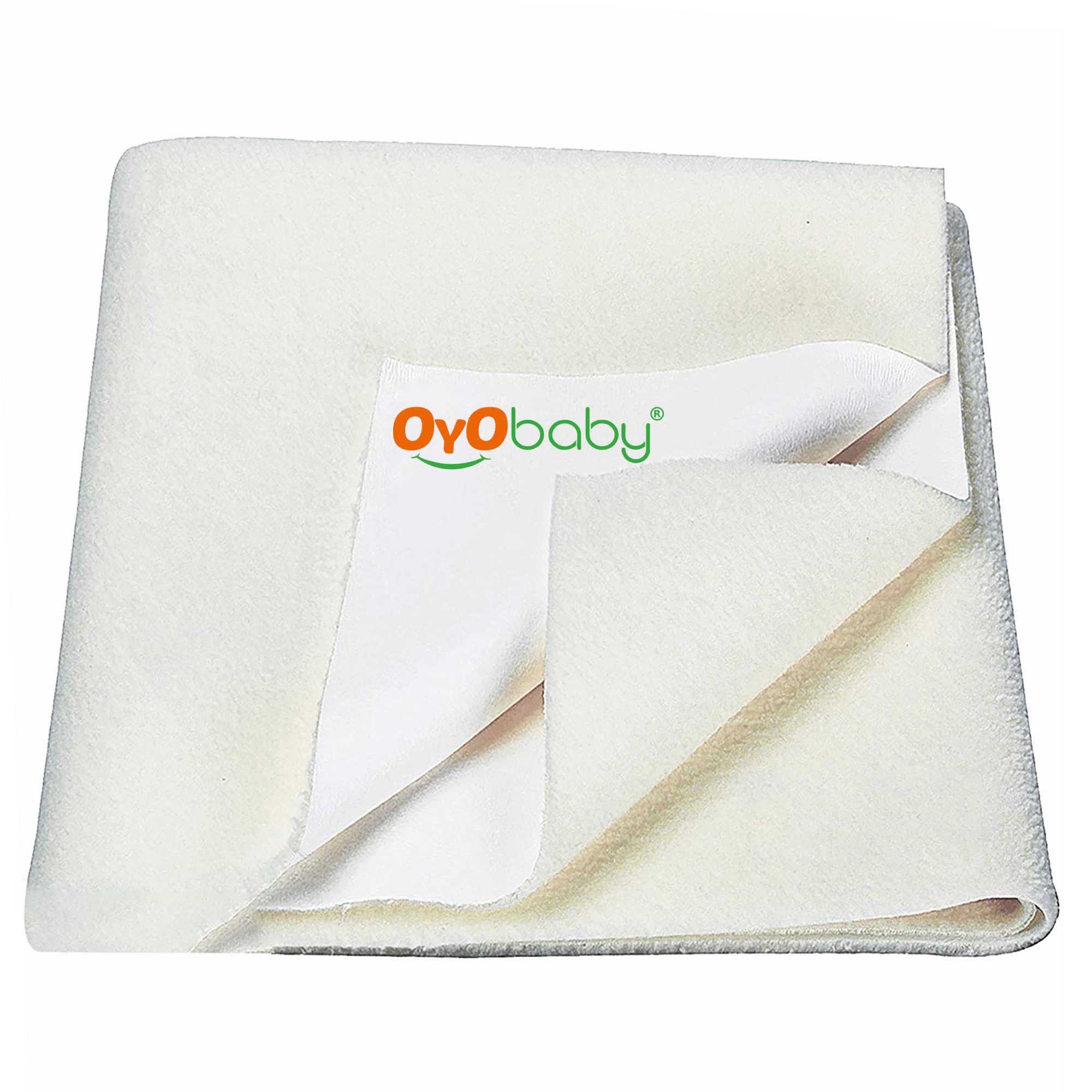 OYO BABY baby dry sheet is made of best waterproof material and highly absorbent fibre. Provides freedom to enjoy uninterrupted sleep for longer periods. It is with quick dry technology that dries faster. Feel the diaper free night and rush-free skin cosy smooth and silky feeling. This waterproof mattress protector has cosy soft and smooth top surface for baby to have sound sleep all night with maximum protection. OYO BABY quick dry bed protector sheet Moreover it is skin friendly and heat-free soft and unique multi-layer noiseless fabric sheet. It is an alternative to PVC rubber mats. Highly hygienic and breathable water proof sheet which is durable reusable economical and light weight. This amazing baby bed protector sheet is ready to use anywhere you go. This baby dry sheet is delicate spongy associated water-proof on these lines creating the tangle usable for babies and grown-up. Made up natural colour dyes which are best for babies. Further this perfect dry sheet for babies protects bed from obtaining wet. So offer your baby the liberty to pee on the bed and let them sleep for extended hours. This sheet from OYO BABY is an absorbent & water proof. It stops the piss or any liquid from getting in your mattresses. It dries quickly so you don't have to be compelled to amendment the sheets once more & again. Conjointly it holds eight times water then its weight. Also it is available in 4 different sizes - Small Medium Large & Extra Large. For example if you want dry sheet for baby for double bed then you dont have to worry we are having the best baby dry sheets here.