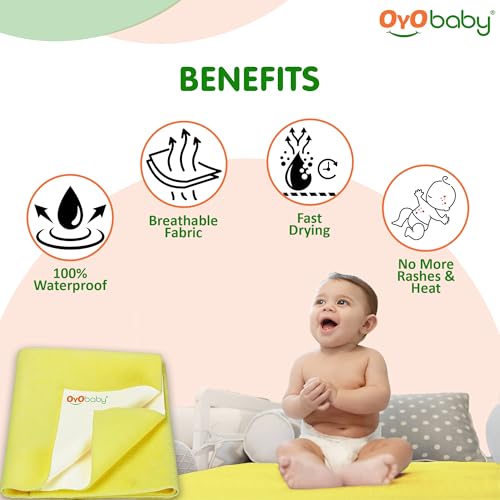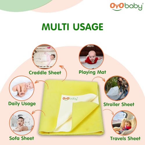 OYO BABY Waterproof Quick Dry Sheet for Baby| Bed Pad | Baby Bed Protector Sheet for Toddler Children (Medium (100cm x 70cm) Yellow)
