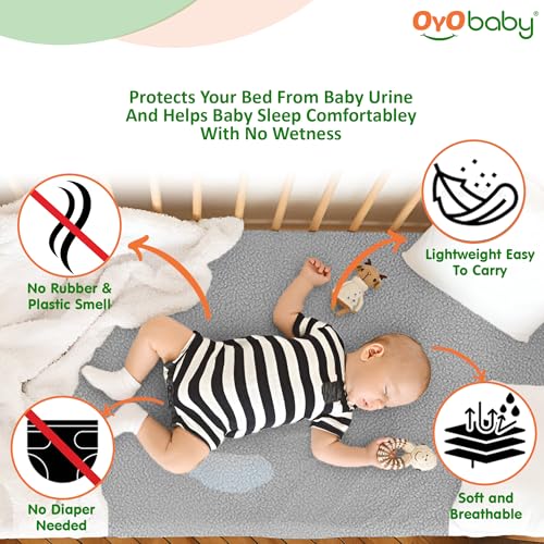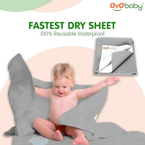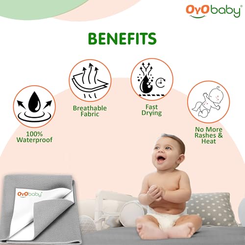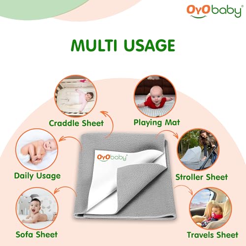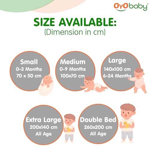 OYO BABY baby dry sheet is made of best waterproof material and highly absorbent fibre. Provides freedom to enjoy uninterrupted sleep for longer periods. It is with quick dry technology that dries faster. Feel the diaper free night and rush-free skin cosy smooth and silky feeling. This waterproof mattress protector has cosy soft and smooth top surface for baby to have sound sleep all night with maximum protection. OYO BABY quick dry bed protector sheet Moreover it is skin friendly and heat-free soft and unique multi-layer noiseless fabric sheet. It is an alternative to PVC rubber mats. Highly hygienic and breathable water proof sheet which is durable reusable economical and light weight. This amazing baby bed protector sheet is ready to use anywhere you go. This baby dry sheet is delicate spongy associated water-proof on these lines creating the tangle usable for babies and grown-up. Made up natural colour dyes which are best for babies. Further this perfect dry sheet for babies protects bed from obtaining wet. So offer your baby the liberty to pee on the bed and let them sleep for extended hours. This sheet from OYO BABY is an absorbent & water proof. It stops the piss or any liquid from getting in your mattresses. It dries quickly so you don't have to be compelled to amendment the sheets once more & again. Conjointly it holds eight times water then its weight. Also it is available in 4 different sizes - Small Medium Large & Extra Large. For example if you want dry sheet for baby for double bed then you dont have to worry we are having the best baby dry sheets here.