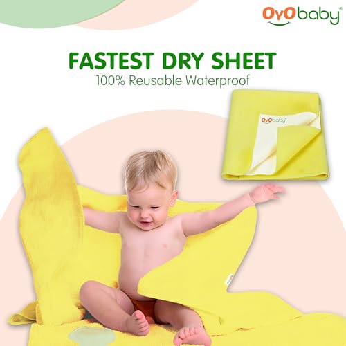 HomeBabyNurseryCrib SheetsOYO BABY Cotton Waterproof Quick Dry Sheet for Baby | Bed Pad | Baby Bed Protector Sheet for Toddler Children (Small (50Cm X 70Cm), Yellow)