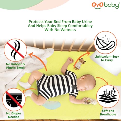 OYO BABY baby dry sheet is made of best waterproof material and highly absorbent fibre. Provides freedom to enjoy uninterrupted sleep for longer periods. It is with quick dry technology that dries faster. Feel the diaper free night and rush-free skin cosy smooth and silky feeling. This waterproof mattress protector has cosy soft and smooth top surface for baby to have sound sleep all night with maximum protection. OYO BABY quick dry bed protector sheet Moreover it is skin friendly and heat-free soft and unique multi-layer noiseless fabric sheet. It is an alternative to PVC rubber mats. Highly hygienic and breathable water proof sheet which is durable reusable economical and light weight. This amazing baby bed protector sheet is ready to use anywhere you go. This baby dry sheet is delicate spongy associated water-proof on these lines creating the tangle usable for babies and grown-up. Made up natural colour dyes which are best for babies. Further this perfect dry sheet for babies protects bed from obtaining wet. So offer your baby the liberty to pee on the bed and let them sleep for extended hours. This sheet from OYO BABY is an absorbent & water proof. It stops the piss or any liquid from getting in your mattresses. It dries quickly so you don't have to be compelled to amendment the sheets once more & again. Conjointly it holds eight times water then its weight. Also it is available in 4 different sizes - Small Medium Large & Extra Large. For example if you want dry sheet for baby for double bed then you dont have to worry we are having the best baby dry sheets here.