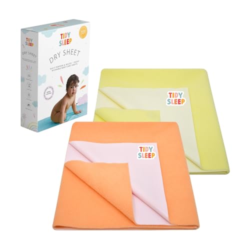 TIDY SLEEP Baby Dry Sheet/Mattress Protector (Waterproof/Quickly Dry/Extra Absorbent/Reusable) - Pack of 2 (Medium (100cm x 70cm) Pink + Royal Blue) (Medium Peach - Green)