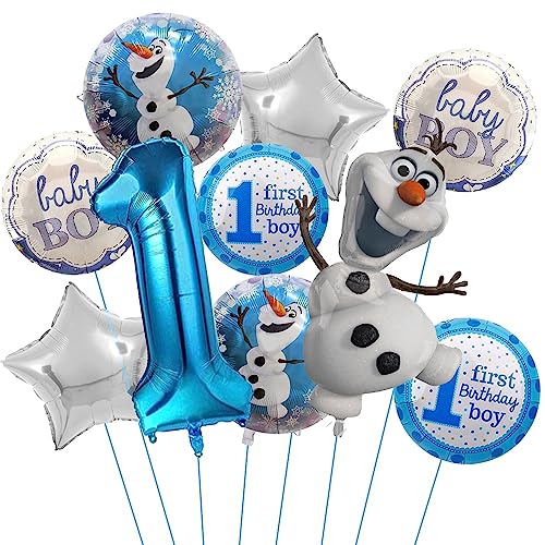 10 Pcs Cartoon Character Snowman Balloon Set 18 Inch Round Foil for 1st Birthday Boy Party Decoration.