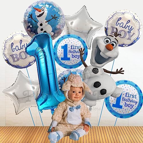 10 Pcs Cartoon Character Snowman Balloon Set 18 Inch Round Foil For 1St Birthday Boy Party Decoration.