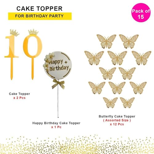 HomeBabyParty SuppliesPop The Party 10th Birthday Cake Decorations Rose Gold Supplies Big Set With Black Happy Birthday Cake Topper, 12 Butterfly Cake Topper And Cake Topper (10 NUMBER)