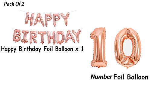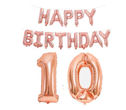 10Th Happy Birthday Aluminum Foil Letters Balloons For Party Supplies And Birthday Decorations (Rose Gold)