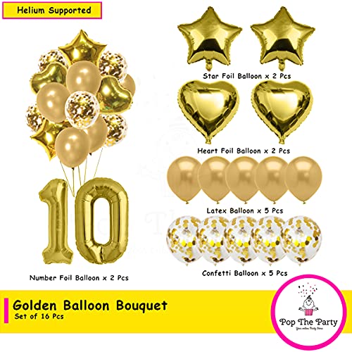 HomeBabyParty SuppliesPop The Party 10th Number balloon With 10 Digit Balloon for Including Gold Latex, star, heart and Confetti Balloons for use of Birthday Party Decoration