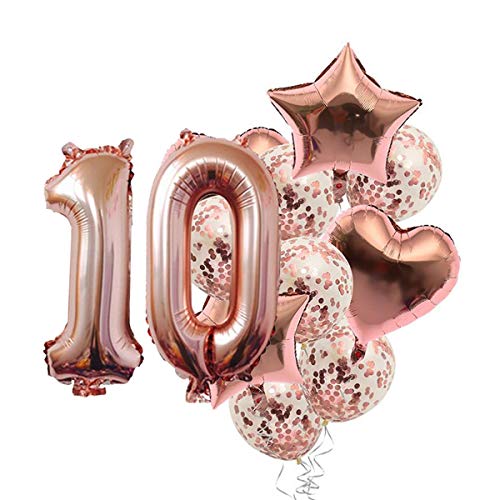 10Th Number Balloon With 10 Digit Balloon For Including Star Heart And Confetti Balloons