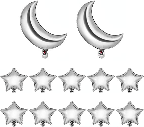 Pop The Party 12 Pcs Silver Moon and Star Foil Balloons Decorate,Baby Shower, Wedding, Bridal Shower Engagement Photo Shoot, Anniversary Decorations