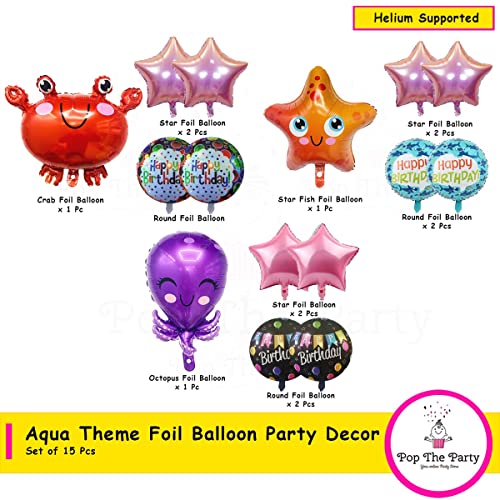 HomeBabyParty SuppliesPop The Party 15Pcs Ocean Animals Balloons Under The Sea Balloons Starfish Crab Octopus with Star and Round foil Balloon for Birthday, Ocean Party Decorations