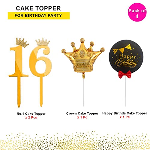 HomeBabyParty SuppliesPop The Party 16th Birthday Cake Decorations Gold Supplies Big Set with Black Happy Birthday Cake Topper, One Gold Crown Balloon and 16 Digit Cake Topper