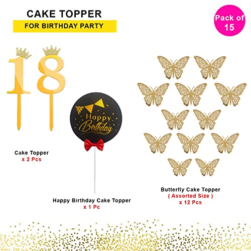 HomeBabyParty SuppliesPop The Party 18th Birthday Cake Decorations Gold Supplies Big Set with Black Happy Birthday Cake Topper, 12 Butterfly Cake Topper and 18 Digit Cake Topper