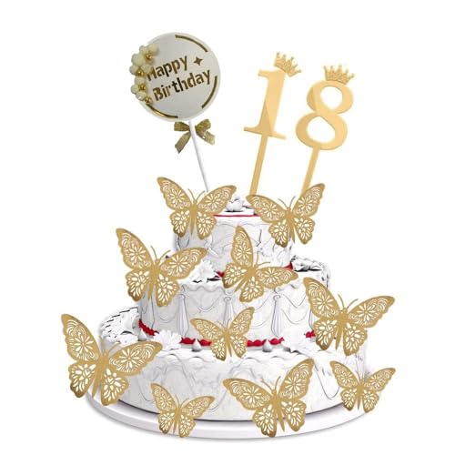 HomeBabyParty SuppliesPop The Party 18th Birthday Cake Decorations Gold Supplies Big Set With Black Happy Birthday Cake Topper, 12 Butterfly Cake Topper And Cake Topper (18 NUMBER)