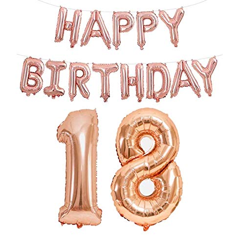 18Th Happy Birthday Aluminum Foil Letters Balloons For Party Supplies And Birthday Decorations (Rose Gold)