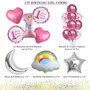 1St Birthday Baby Girl Decoration Kit Pink 1 Number With Round Shape Foil Ballon And Confittee With Silver Moon Star And Multicolor Rainbow (Pack Of 18 )