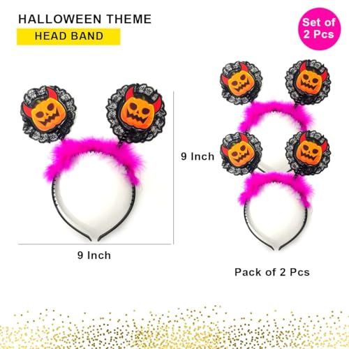 2 Pack Halloween Headbands Pumpkin Davil Cute Cartoon Hair Hoop Hair Accessories for Halloween Costume Cosplay Party Favors Photo Booth