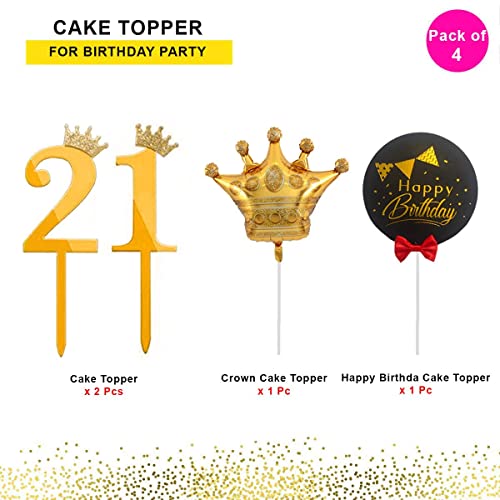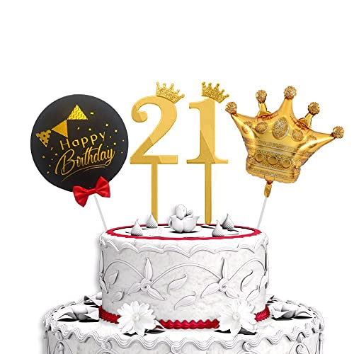 HomeBabyParty SuppliesPop The Party 21s Birthday Cake Decorations Gold Supplies Big Set with Black Happy Birthday Cake Topper, One Gold Crown Balloon and 21 Digit Cake Topper