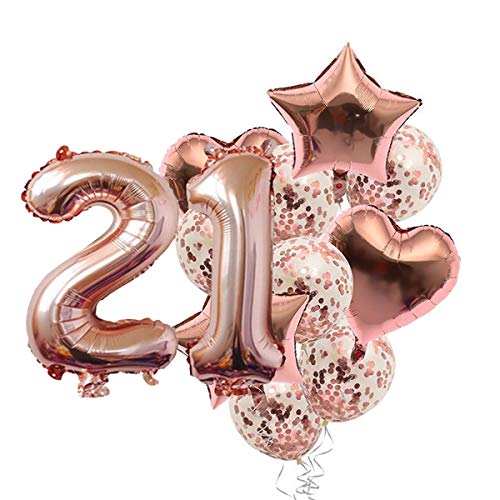 21H Number Balloon With 21 Digit Balloon For Including Star Heart And Confetti Balloons