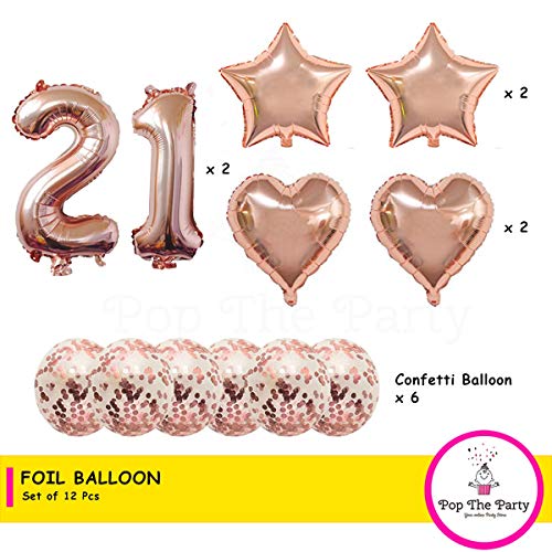HomeBabyParty SuppliesPop The Party Nylon 21Th Number Balloon With 21 Digit Balloon For Including Star, Heart And Confetti Balloons, Multicolor, 14 Pcs