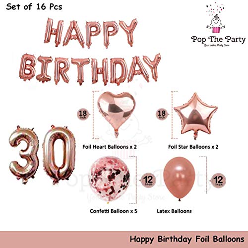 HomeBabyParty SuppliesPop The Party 30th Birthday Party Decorations Rose Gold Supplies Big Set with Happy Birthday Balloons Banner and 30 Digit Balloon for Including Latex, Star, Heart and Confetti Balloons
